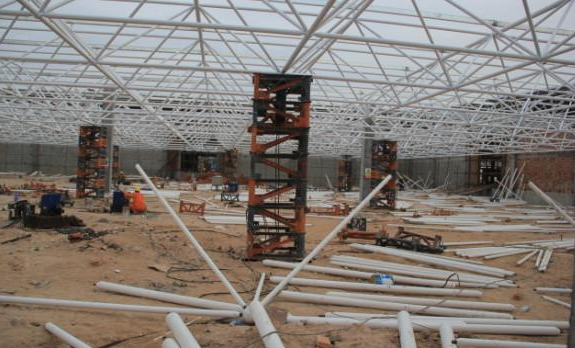 5)总体晋职法:此步履多使用在周边支护以及有多点支护的网架结构,可采取平板升降机、液压千斤顶等小型机具作业亳州施工;